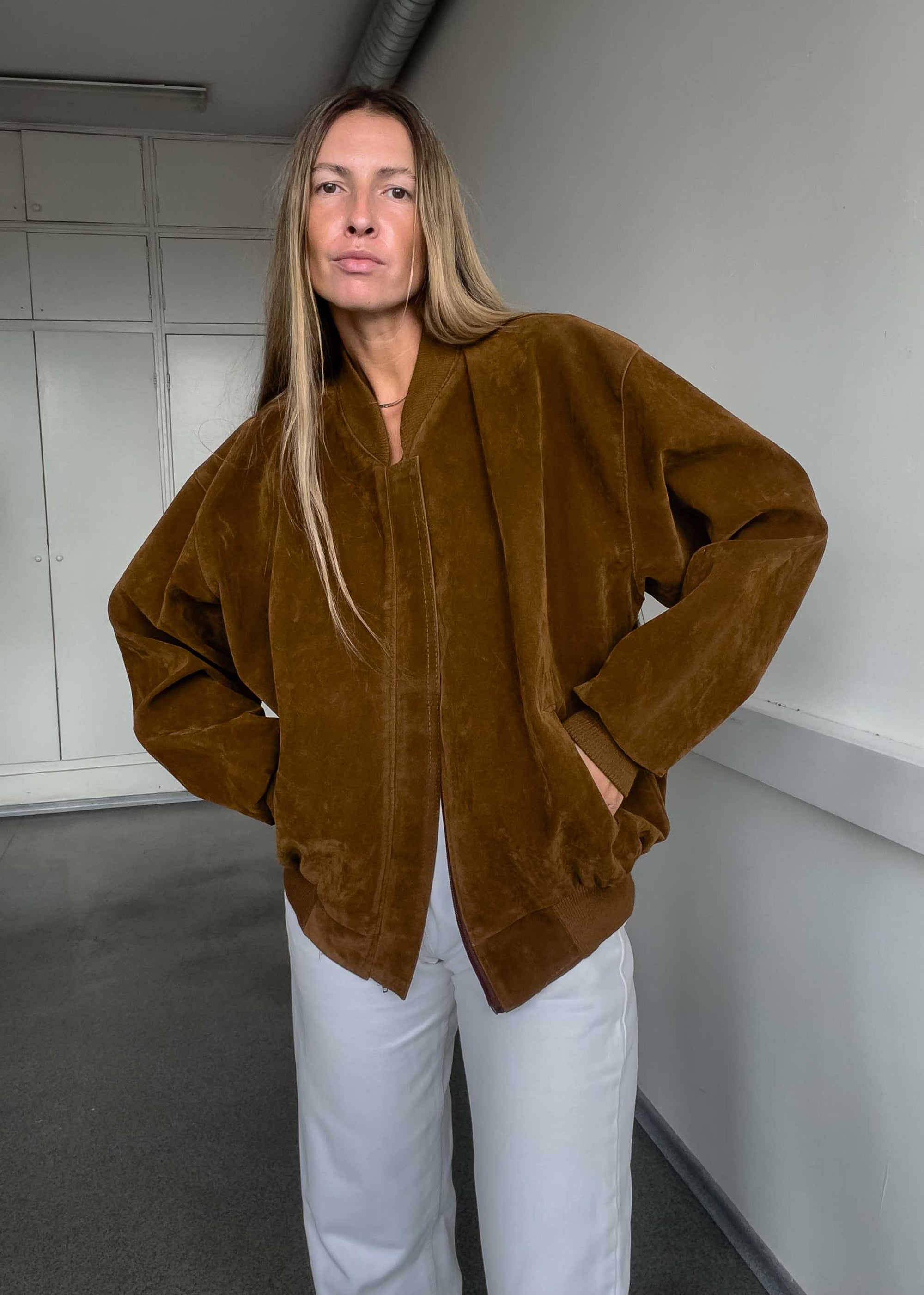 Beautiful leather jacket. It's a classic piece that never goes out of style.